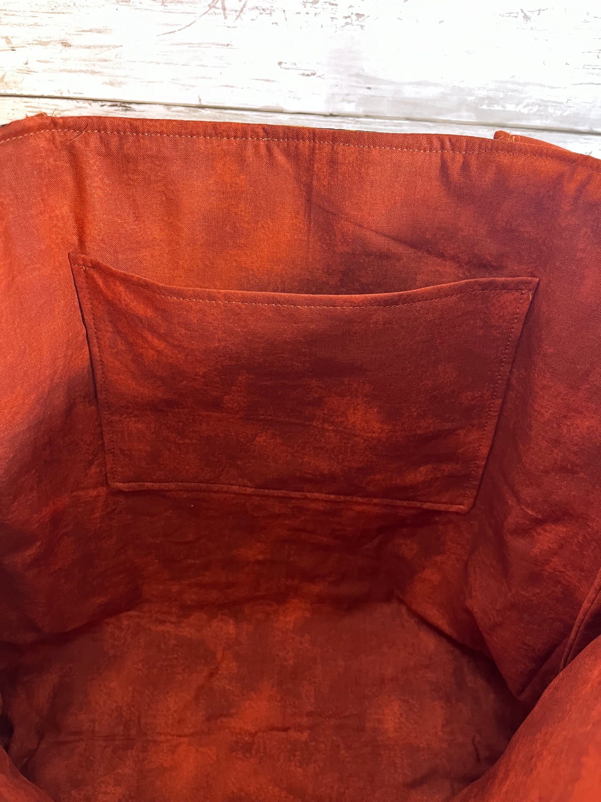 Whether used as a reusable shopping bag, book tote, or gift for a nature enthusiast, this beautiful handmade piece brings cozy seasonal charm and practicality together in one lovely design.