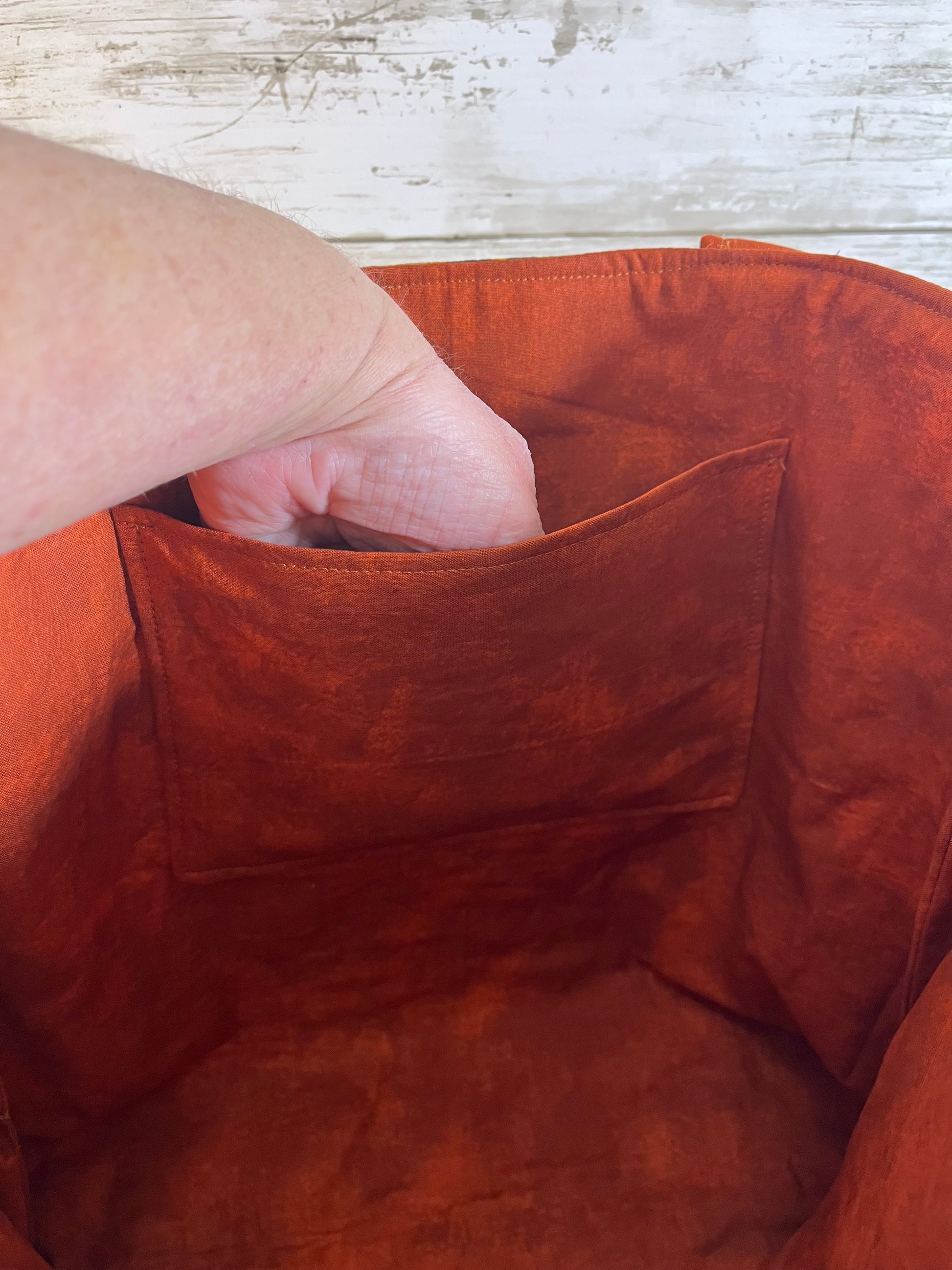 Each tote is handmade with care — slight variations in fabric placement make every bag one of a kind!