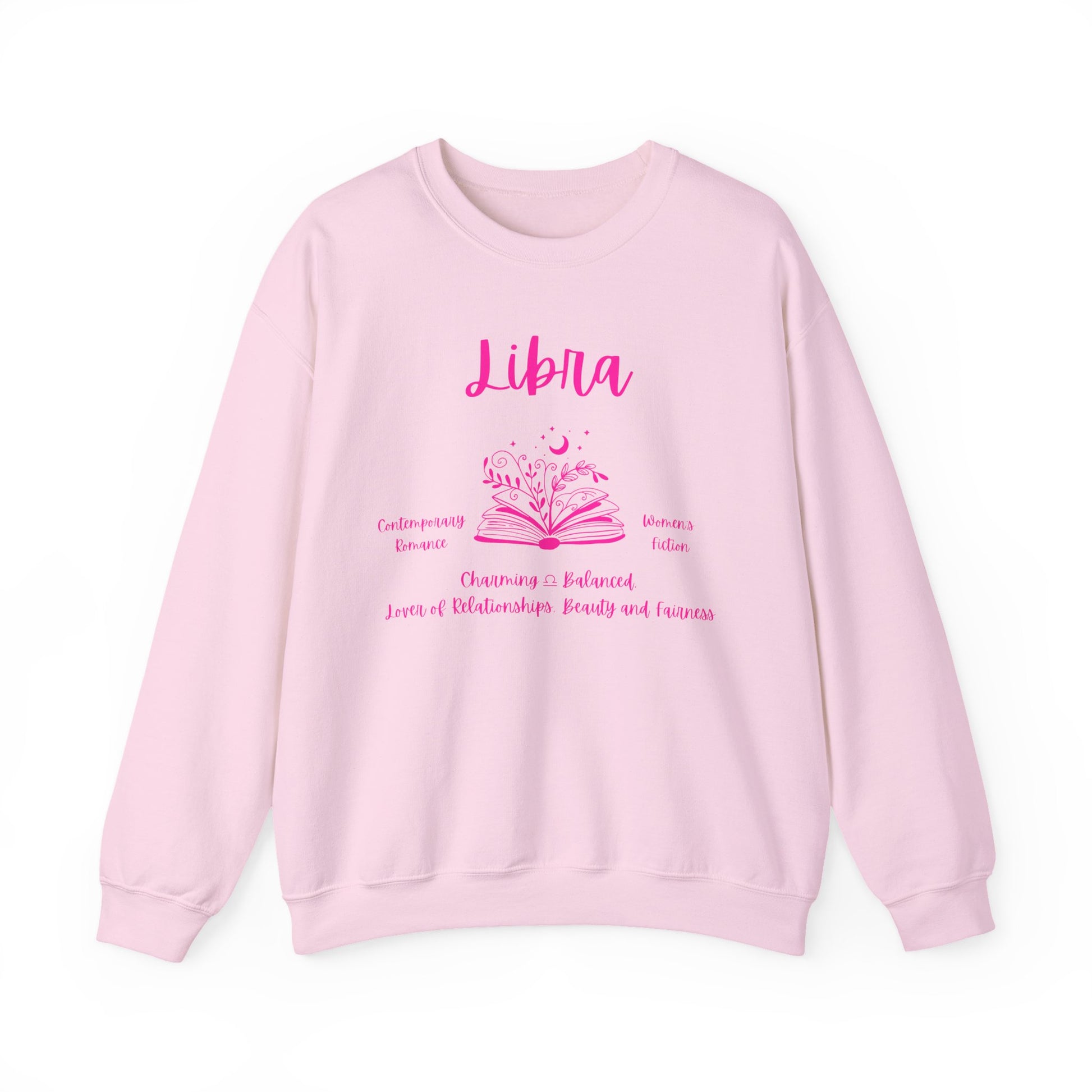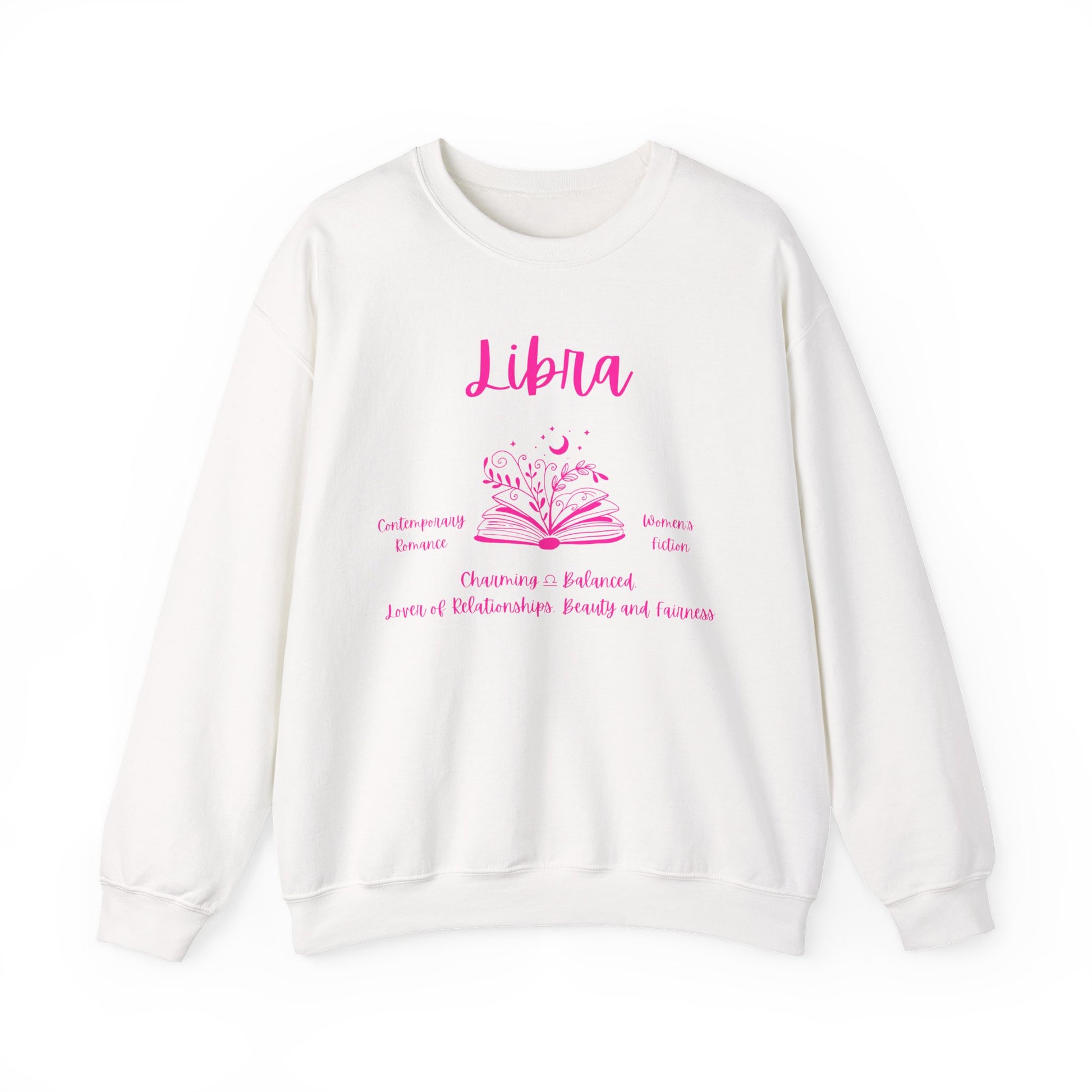 Libra Book Lover Sweatshirt , Black, White or Light Pink, Bright Pink Design